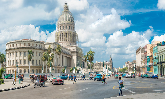 早上抵達,享用當地早餐 ,早餐后,前往哈瓦那新城,游覽【國會大廈】外觀,古巴政治 游行的舉辦地-【革命廣場】 ,廣場中央是一座 17 米高的古巴著名革命領袖和詩人何 塞 ·馬丁的大理石雕像,在雕像后面是【何塞 ·馬丁紀念碑】,還有【尊嚴廣場】 、【十 里海濱大道】 、【旅古華人紀功碑】和【百年蓉樹廣場】等 。午餐后,入住酒店休息 。 下午特別贈送:【乘坐 哈瓦那老爺車 1 小時】 。乘車巡游海邊大道和城區,駐足【馬 雷貢大道】 ,看海浪拍打岸邊的礁石 。晚餐安排龍蝦餐 。