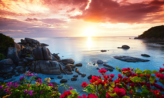 蘇梅島的自然條件非常好,被奉為泰國的潛水圣地,也被許多人列為世界十大潛水地之一,周遭海域中清澈的海水與豐富的海洋生物,總是吸引著潛水愛好者的身心。蘇梅島上的干凈、狹長白沙灘,是每個人夢想中的熱帶島嶼仙境。 蘇梅島的安通國家公園就象電影里頭的夢幻之島一樣。石灰巖洞穴、珊瑚礁島林立,到處是色彩艷麗的熱帶魚群。那里保留了更多自然淳樸的氣息,因為20年前,蘇梅島還基本上是一片與世隔絕的世外桃源,因為開發的歷史不長,所以,至今島上還保存著一份原始風味。 蘇梅島上海灘眾多,處處水清沙白,景致迷人。特別熱鬧的要數查汶(Chaweng)和拉邁(Lamai),都位于島的東部。在感慨蘇梅島海灘的美麗之余,也不要忘了去拜訪蔥郁的椰樹園,沉靜的小漁村,美麗的瀑布和會摘椰子的猴子