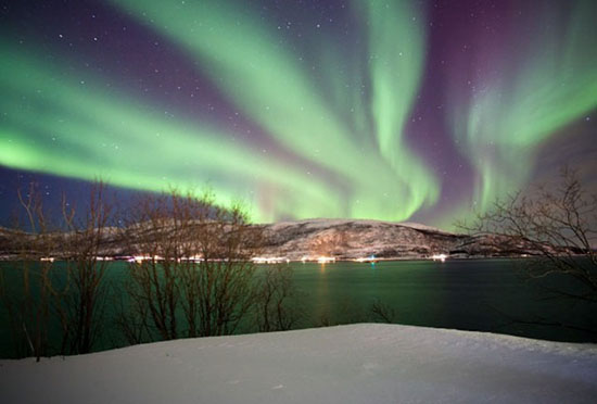 在薩米人的篝火旁, 極光是被風(fēng)重 新點(diǎn)燃的逝者靈魂,于天幕起舞;也是 神靈交戰(zhàn)的火星,一旦墜落,便成永恒。 詩(shī)人葉賽寧曾稱它為“上帝用冰與火編 著的綢緞 ”,在北緯69°的夜里輕輕抖 動(dòng),發(fā)出無(wú)聲的藍(lán)色裂帛。
