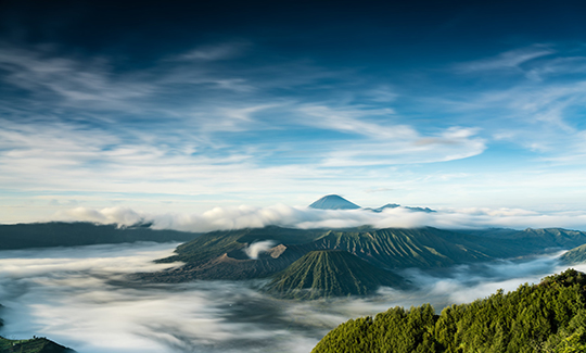【京打馬尼火山】(遠眺)是座活火山 ,位于巴厘島中部北邊山區 ,離登巴薩 68 公里 ,是以海拔 1717 米的巴都魯山為中 心的高原地區 ,是島上少有的避暑納涼休閑圣地。