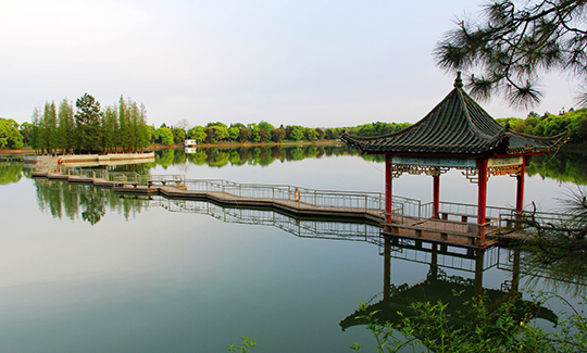 ▲【如琴湖】抵達(dá)后換乘觀光車游覽碧波蕩漾、形如提琴的如琴湖;