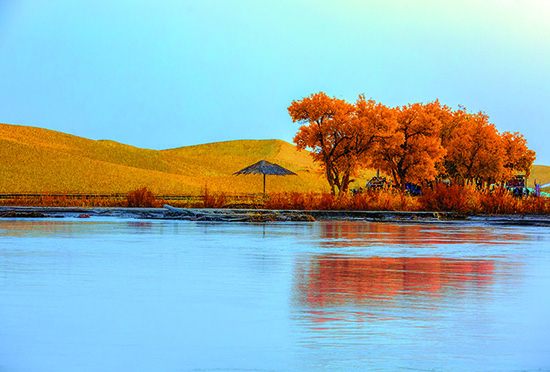 15:30-18:00 游覽【羅布人村寨】,此處有千姿百態的原始胡楊林,塔里木河與渭干河在這里交相輝映,塔克拉瑪干大沙漠一望無際。劃獨木舟、食烤魚、操羅布泊方言的羅布民族就生長在這里。旅游者在此可涉河水、穿森林、騎駱駝觀沙海;領略羅布民族風情,享受回歸大自然的樂趣;